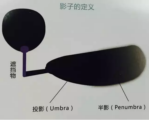 2.物体受光部分和其投影,通过比较表现出来的影子
