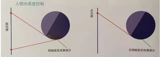 影子轮廓的模糊地带,也称光影渐变过渡;又分硬渐变和柔渐变两种。
