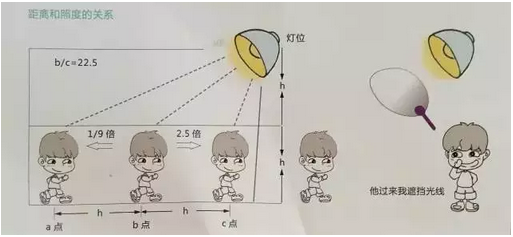 如果移动遮光板,改变距离a和b日光灯长度d和阴影长度c之间关系,可以用相似三角形原理来计算公式:c/a=d/b